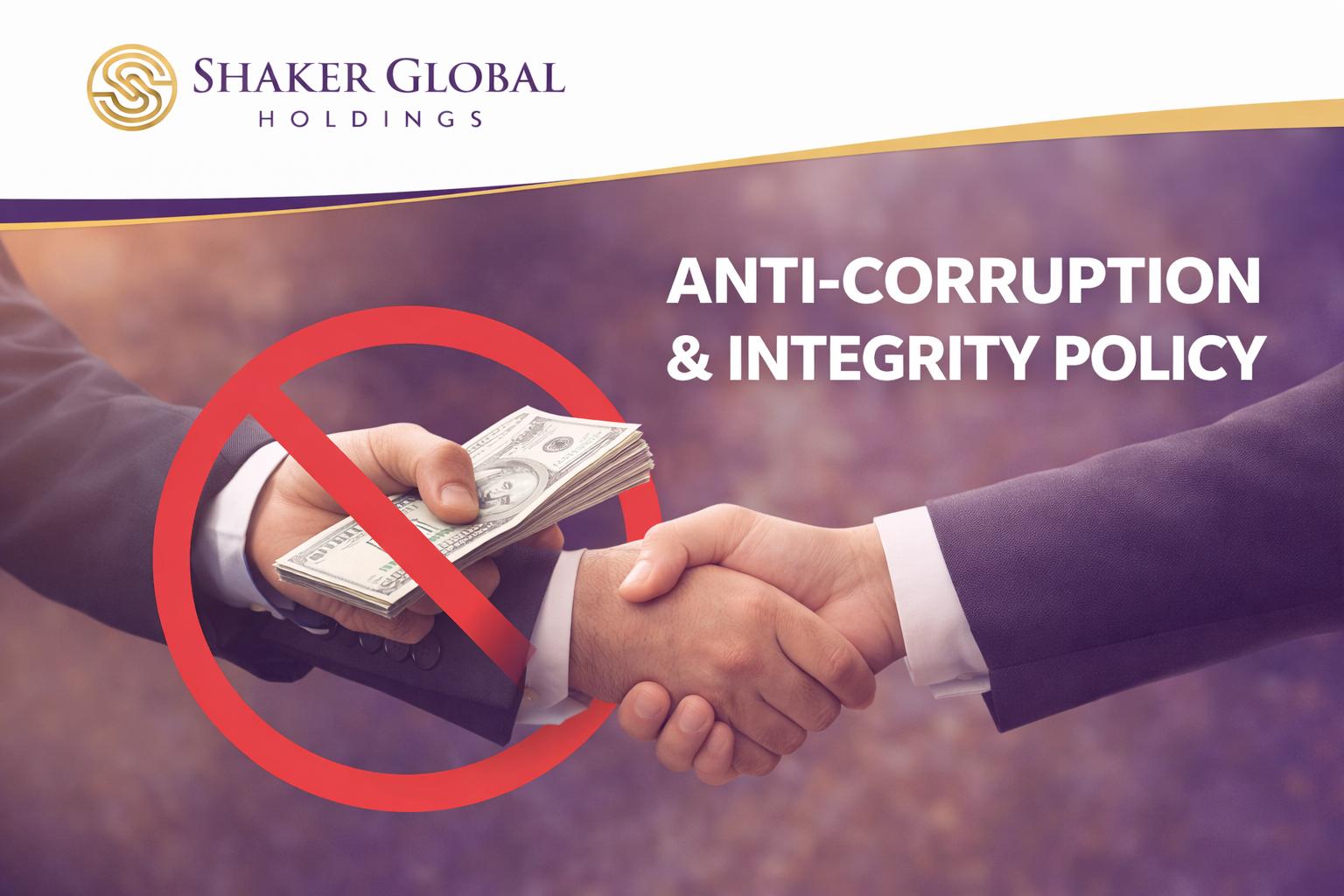 Shaker Global Holdings (“Shaker Global Holdings,” “we,” “our,” or “us”) maintains a strict zero-tolerance policy toward corruption, fraud, bribery, theft, abuse of authority, and any misconduct that harms the dignity, rights, or safety of beneficiaries.