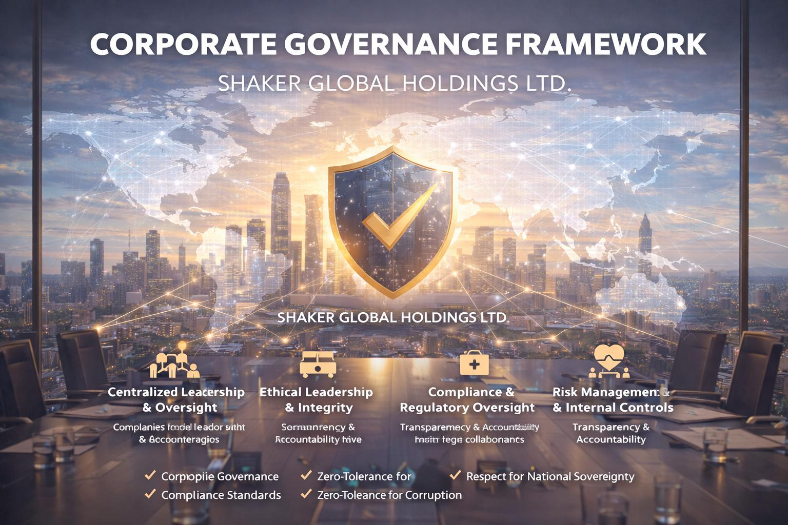 Shaker Global Holdings Ltd. operates under a centralized corporate governance framework designed to ensure transparency, accountability, ethical leadership, and long-term institutional stability across all subsidiaries, affiliates, and global initiatives.